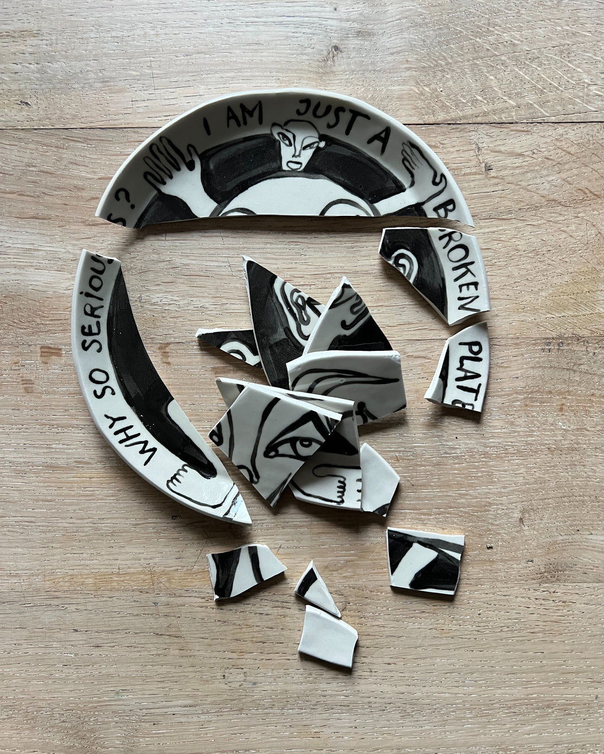 The first unique ceramic plate Lohana has created for DAYJOB reflects the frustration in her mind when clay dries too fast, experiences cracking and the fragility of each artwork’s lifespan - Lohana then crafts a second plate which she deliberately shatters, as a way of showing that accepting the material with its vulnerabilities is part of the creation process, as a form of acceptance.